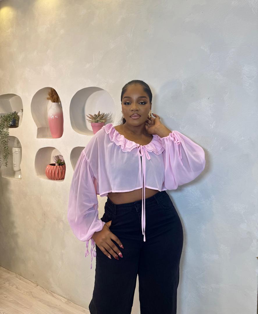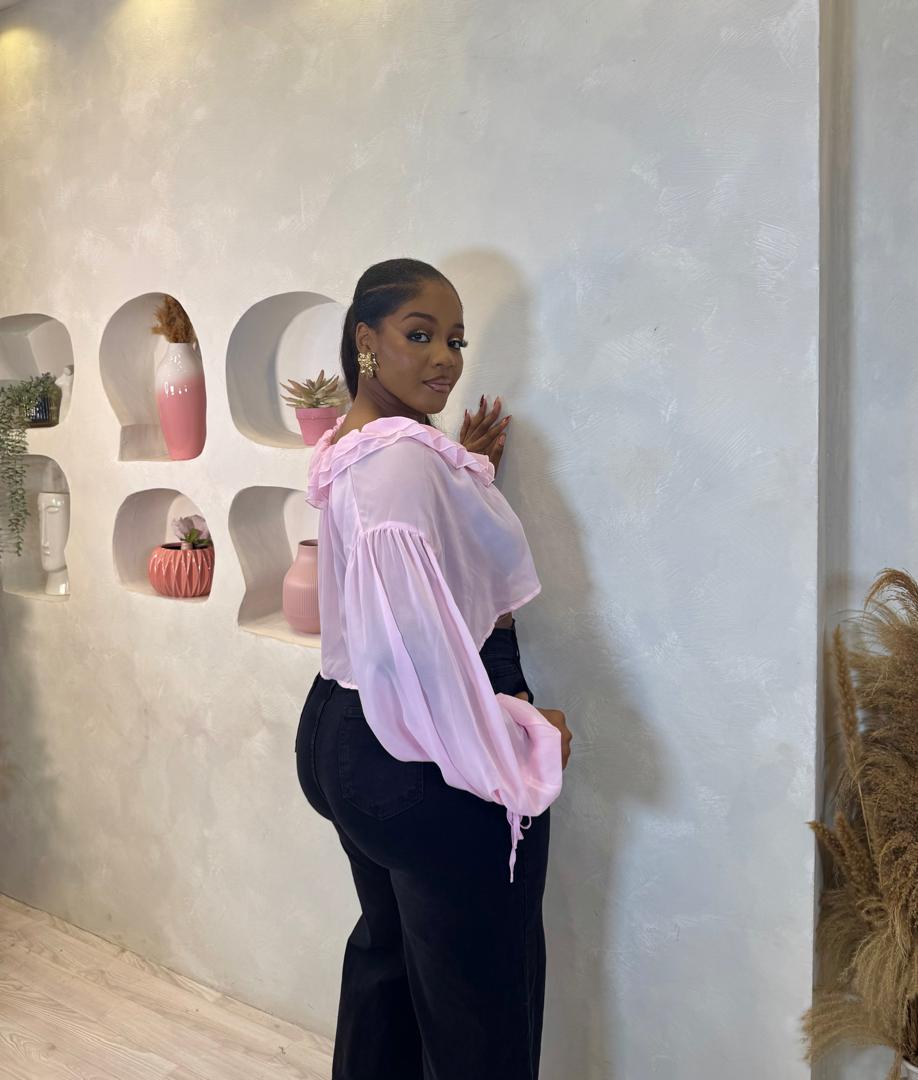 Crafted from lightweight, airy fabric, it sits beautifully on the body and pairs gorgeously with high-waist jeans, wide-leg pants, or skirts. Whether you’re going for brunch, a soft-girl outing, or a casual date, this top gives you that sweet, dreamy Petiti energy.
